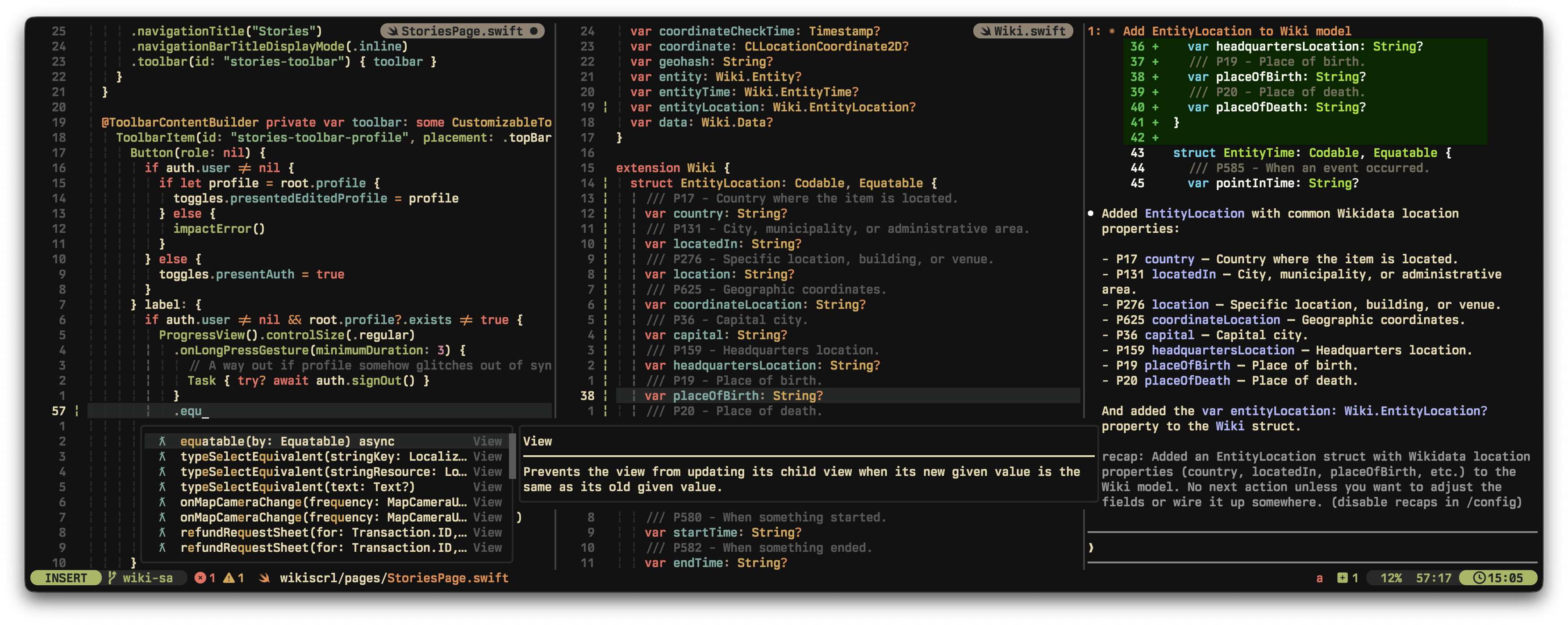 Full Swift LSP via sourcekit-lsp with diagnostics, code actions, and go-to-definition. Build, run, and debug iOS and macOS apps from your terminal without ever opening Xcode.